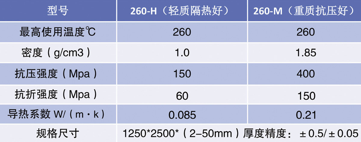 在耐熱性需要達(dá)到260℃以內(nèi)的條件下使用的工業(yè)設(shè)備隔熱材料;